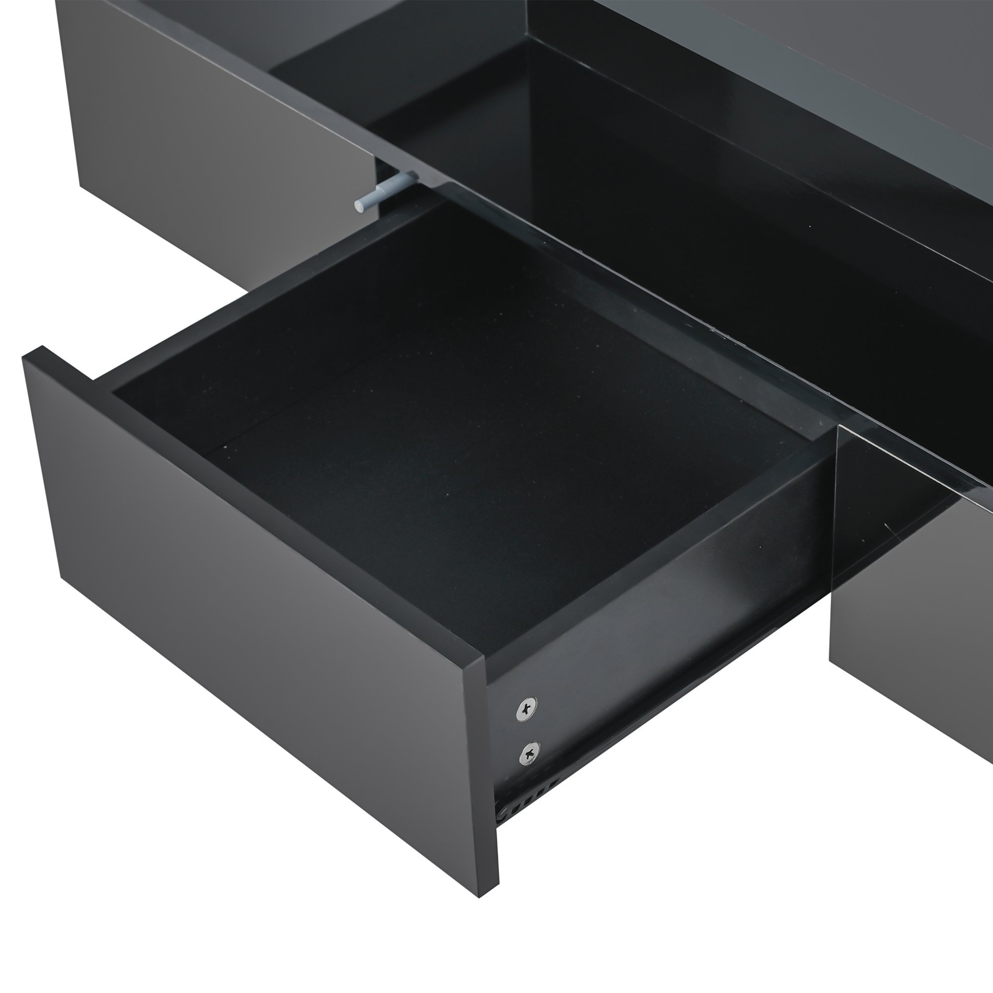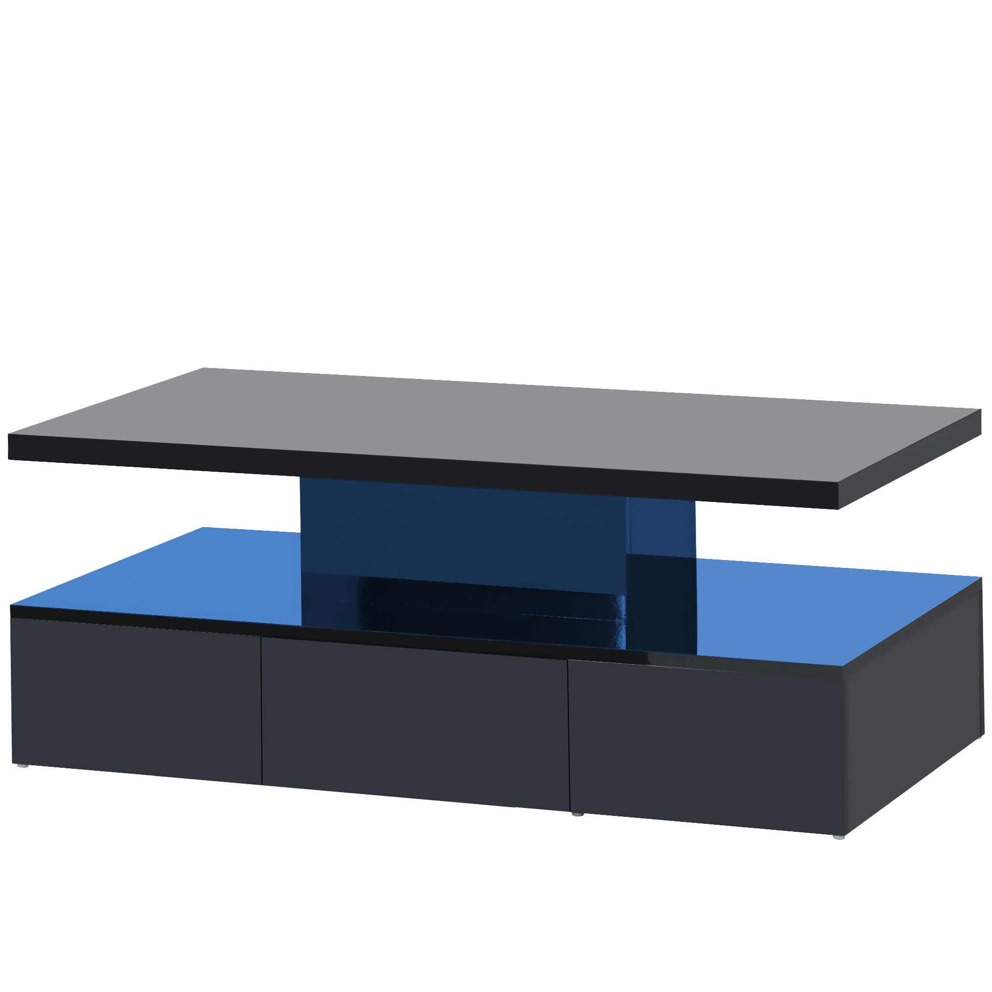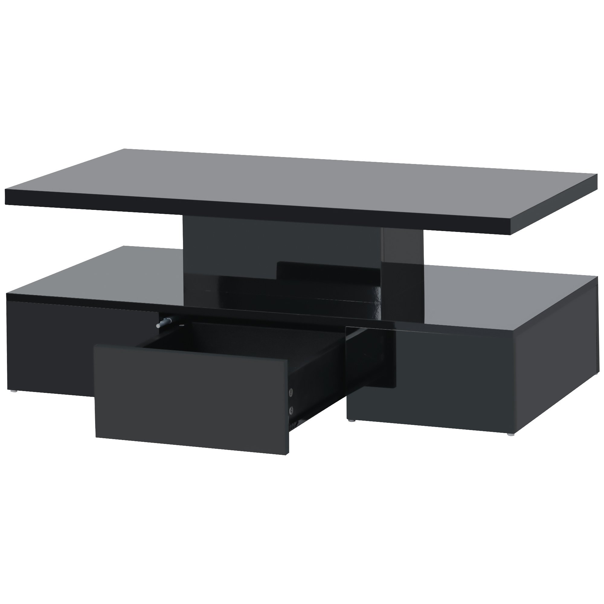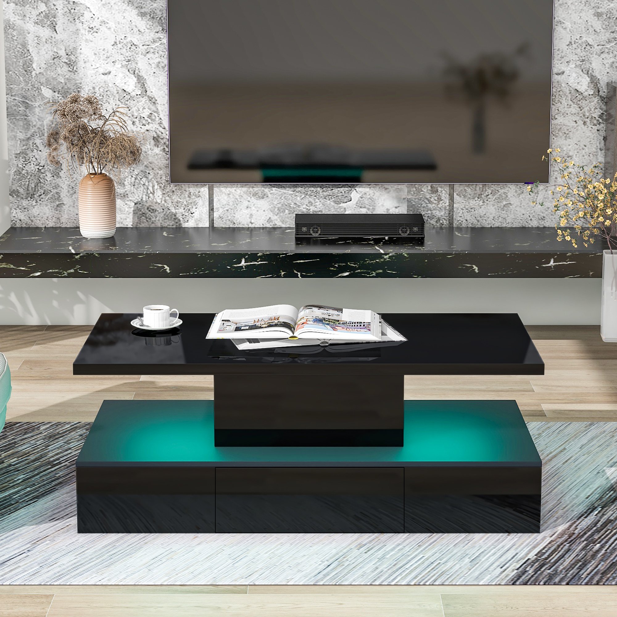 Home > ON-TREND Modern Glossy Coffee Table With Drawer, 2-Tier Rectangle Center Table with LED lighting for Living room, 39.3''x19.6''x15.3'', Black